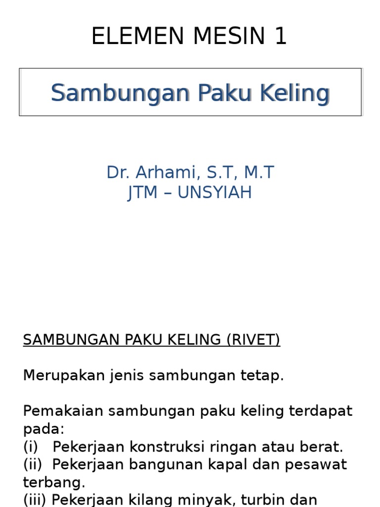 Contoh Soal Paku Keling. Detail artikel terkait contoh soal perhitungan paku keling beserta jawabannya. Memahami apa itu mesin kalor dan mesin diesel; Diketahui diameter paku keling = 31 mm tebal 13 c c b b a a mm (plat penyambung) Seluruh paku keeling berukuran diameter sama.