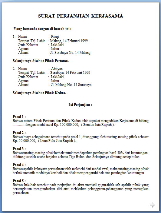 2.500.000 (dua juta lima ratus ribu rupiah) kepada pihak pertama selama 1 bulan. Apakah saat ini anda memiliki kerjasama dengan pihak lain dalam bisnis ayam potong? Contoh surat perjanjian kerjasama investasi modal usaha ini digunakan sebagai keterangan dan pengikat dua belah pihak yang melakukan kerjasama. 06 tf kerma iv 2018 pada hari ini jumat tanggal dua puluh empat bulan april tahun dua ribu dua puluh 24 april 2020 bertempat di kota bogor telah ditandatangani perjanjian kerjasama antara. Contoh surat perjanjian kerjasama adalah salah satu surat resmi yang isinya suatu perjanjian kerjasama bagi hasil yang dibuat kedua belah pihak.